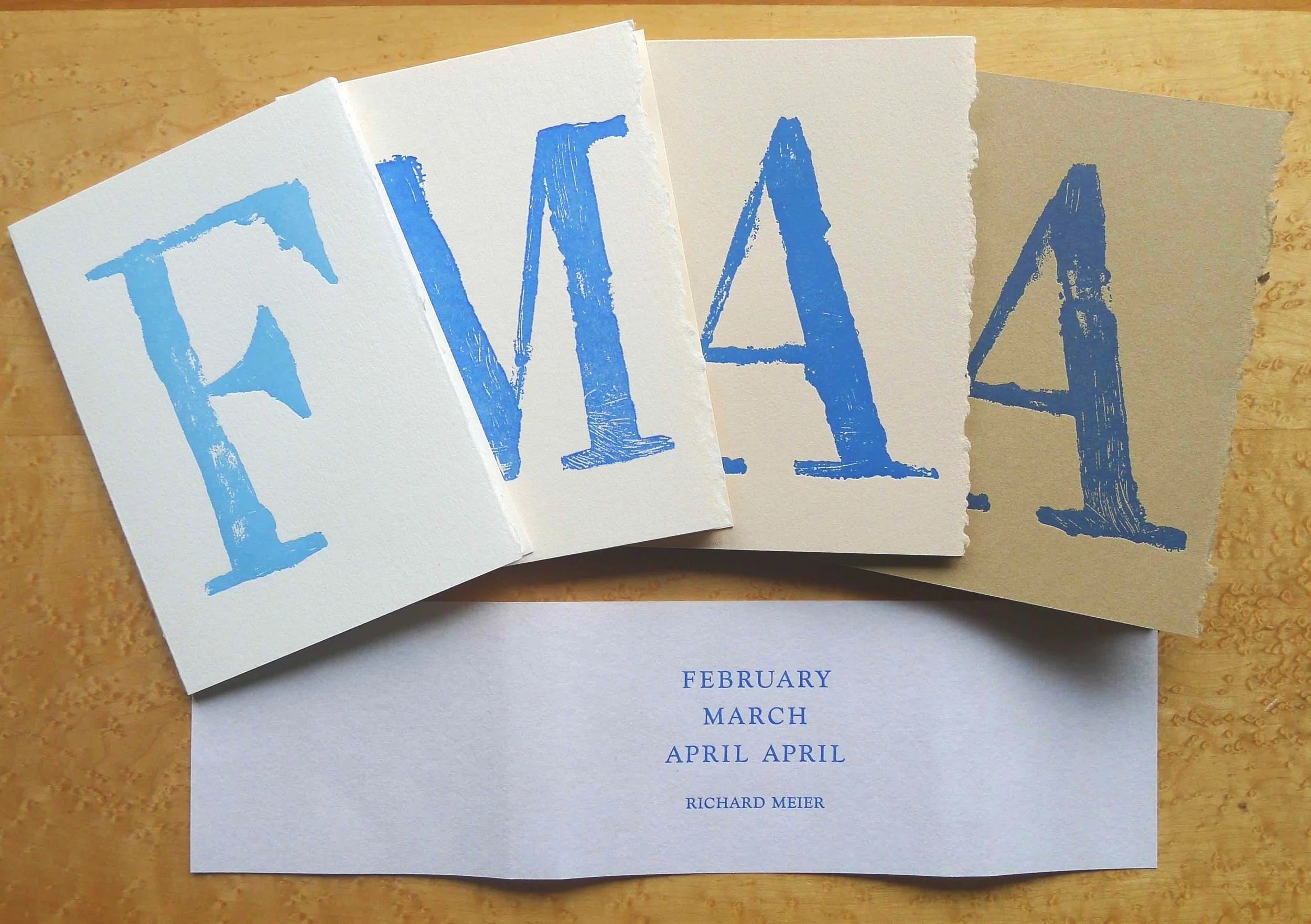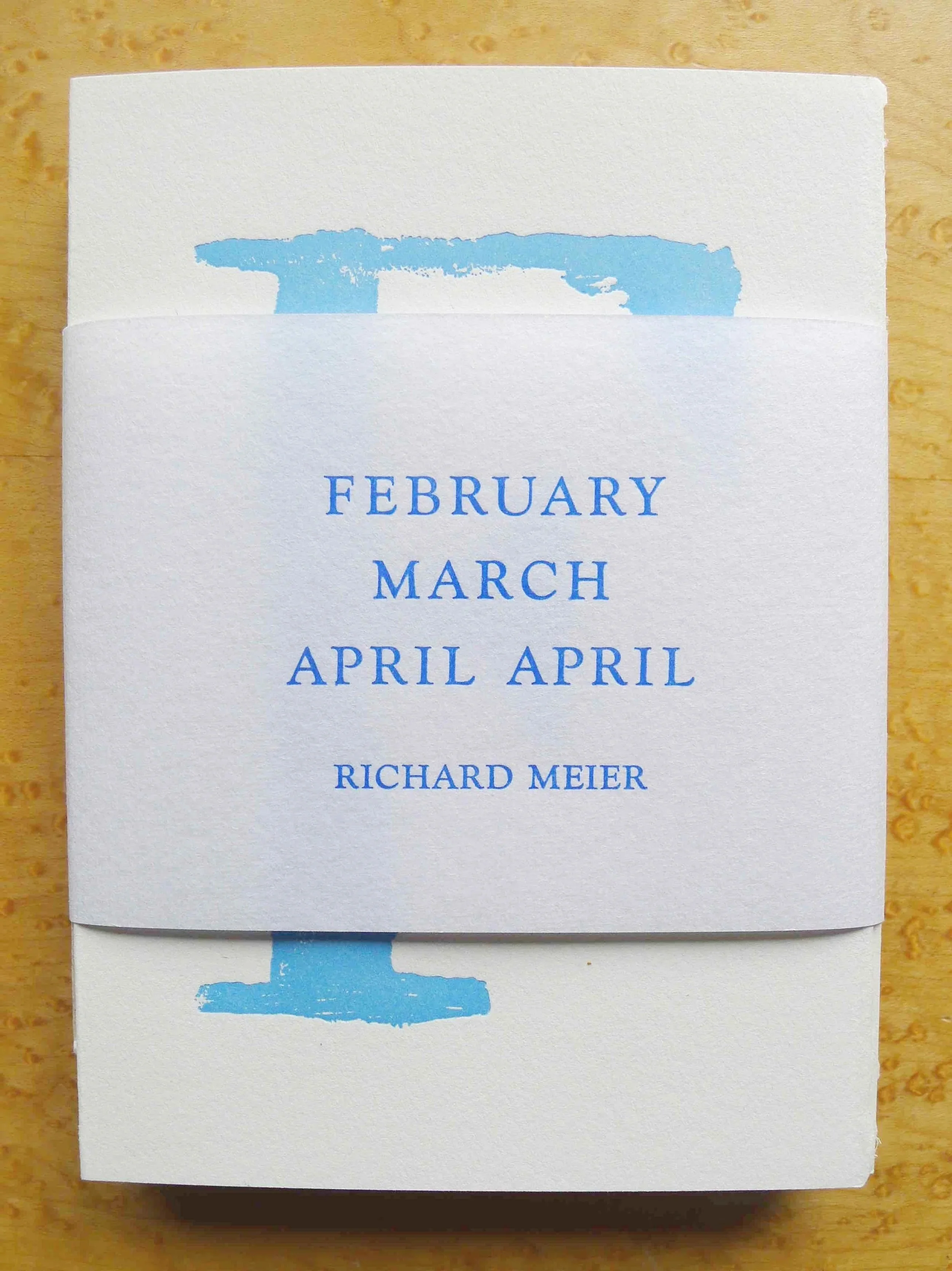 These four collections—February 2, 2014 / March 7–8, 2014 / April 9, 2014 / April 11, 2014—are a sample from over 100 such works written by Meier since 2012.
